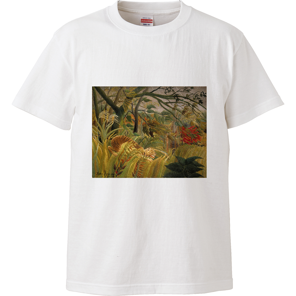 熱帯嵐のなかのトラ(アンリ・ルソー):厳選名画Tシャツコレクション(ホワイト)・絵画グッズ・美術館グッズオンライン通販人気・ミュージアムショップグッズ・絵画グッズ・美術館お土産・ギフト【安心の送料込・税込】
