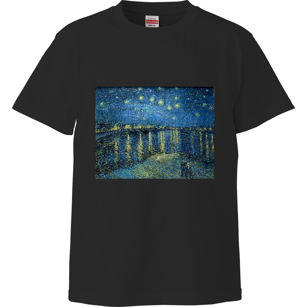 ローヌ川の星月夜(フィンセント・ファン・ゴッホ ):厳選名画Tシャツコレクション(ブラック)・世界の美術作品名画グッズ【安心の送料込・税込】